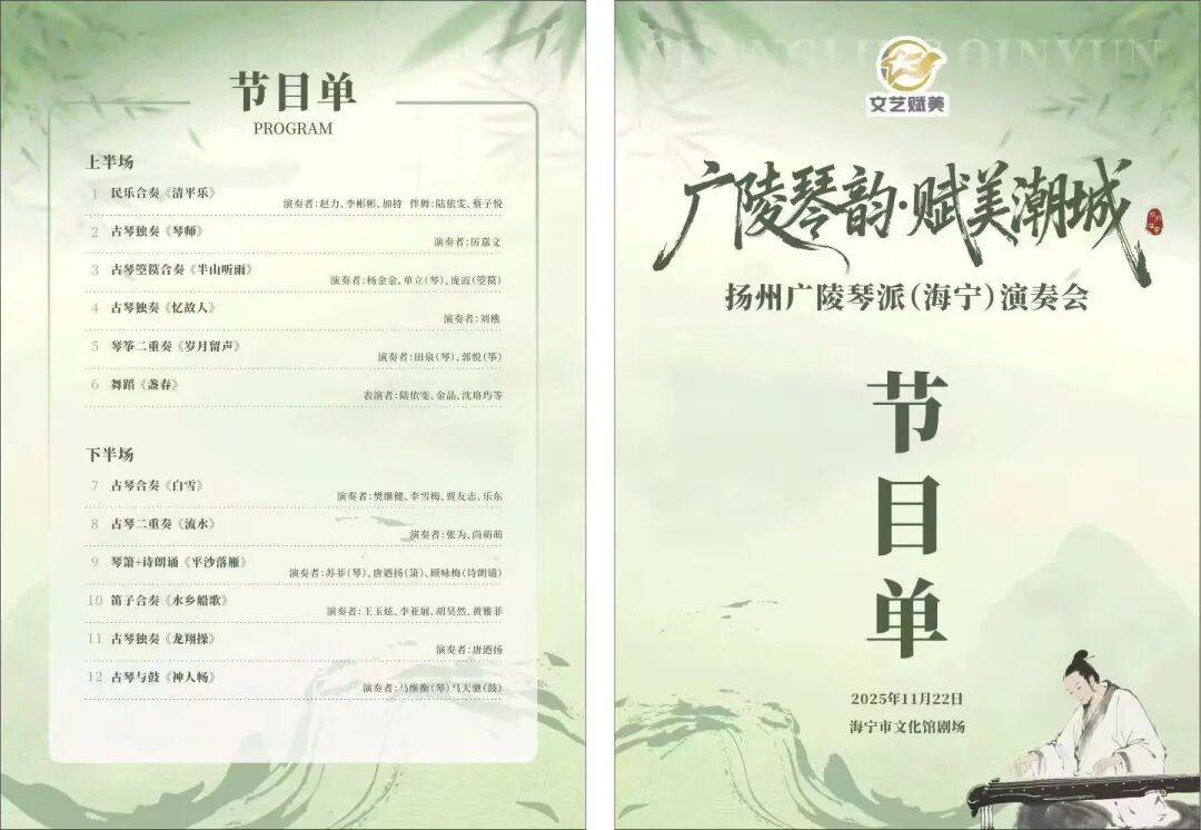 当运河琴风跨越千里与钱塘潮声相遇,当古琴雅韵碰撞筝音婉转,一场震撼人心的艺术盛宴在海宁市文化馆圆满上演。“广陵琴韵·赋美潮城”扬州广陵琴派海宁演奏会吸引近500位观众到场,扬州市非遗协会副会长田泉、常务理事马维衡、理事苏菲、单立、郭悦以及多位会员豋台献演。两地以琴为媒,为观众献上了一场高密度、高水准的视听盛宴。